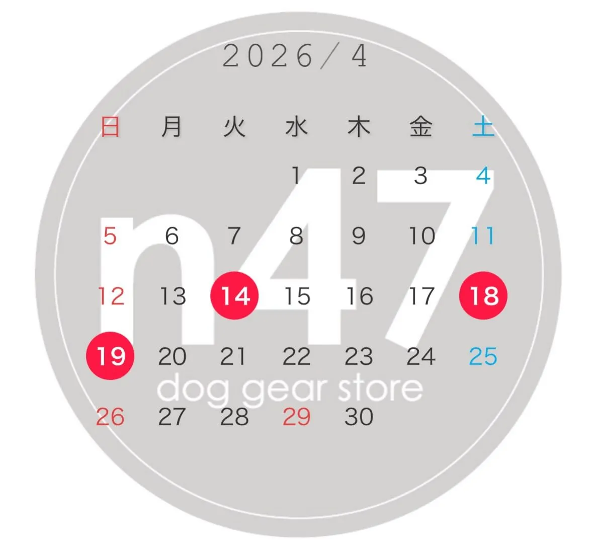 赤色の日はお休みをいただきます。